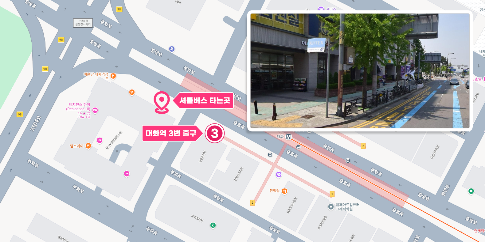 [대화역 승하차장] 지하철역 3번 출구 전방 30m 올리브영 앞